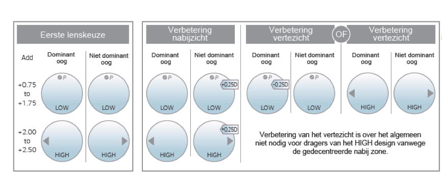Sterkte +6,00D tot -6,00D (stappen van -0,25D)